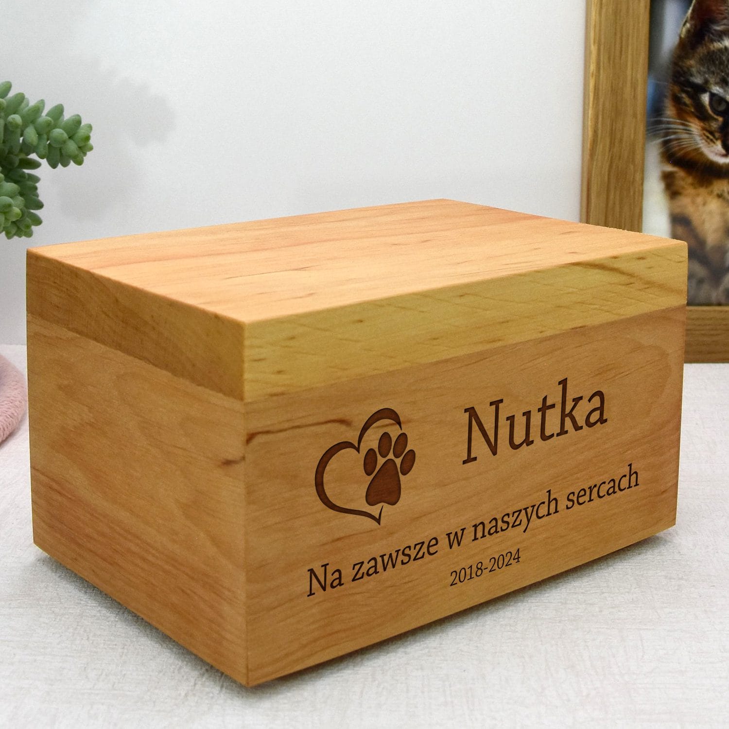 Personalizacja: Urna na prochy psa zostanie wygrawerowana zgodnie z Twoimi życzeniami, aby odzwierciedlała charakter Twojego ukochanego pupila.